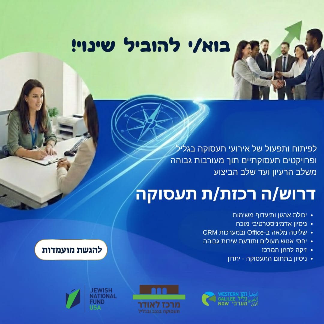 הזדמנות להוביל שינוי. מרכז לאודר לתעסוקה בגליל מחפש רכז.ת תעסוקה לפיתוח ותפעול אירועי תעסוקה ופרוייקטים תעסוקתיים בגליל תוך מעורבות גבוהה משלב הרעיון ועד שלב הביצוע. אם את.ה מחפש.ת עבודה עם אתגר, משמעות, חזון והרבה עשיה - נשמח לצרף אותך לצוות המוביל שלנו. שלח.י מועמדות עכשיו >>